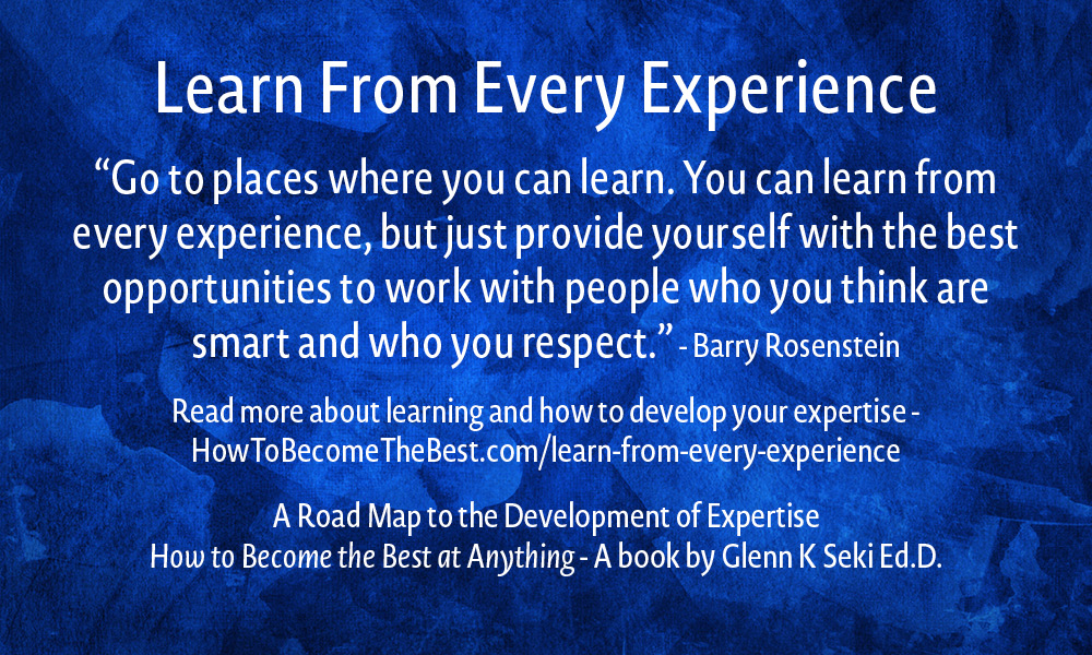 “Go to places where you can learn. You can learn from every experience, but just provide yourself with the best opportunities to work with people who you think are smart and who you respect.” – Barry Rosenstein *** How you learn something… An excerpt from How To Become The Best at Anything, Chapter 8, Deliberate Practice and Learning Learning “When you are trying to learn something new or you are teaching someone something new, it can be a very daunting task. It is difficult because learning something new is not easy, but it can be made easier if you understand how learning works. Learning can be divided into four basic…