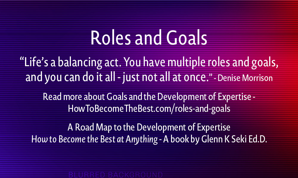 “Life’s a balancing act. You have multiple roles and goals, and you can do it all – just not all at once.” – Denise Morrison *** An excerpt from How To Become The Best at Anything, Chapter 6, A Goal and a Plan “You need to have a specific ultimate goal. Let’s say you want to win an Olympic gold medal in swimming in the 200-meter freestyle. You have a specific ultimate goal, which is a good start because you know your final destination. When I was in graduate school in biology at UCLA one of my classes was a graduate seminar consisting of three students and two professors (George…
