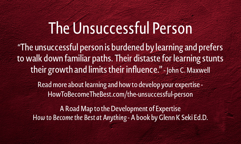 “The unsuccessful person is burdened by learning and prefers to walk down familiar paths. Their distaste for learning stunts their growth and limits their influence.” – John C. Maxwell *** How you learn something… An excerpt from How To Become The Best at Anything, Chapter 8, Deliberate Practice and Learning Learning “When you are trying to learn something new or you are teaching someone something new, it can be a very daunting task. It is difficult because learning something new is not easy, but it can be made easier if you understand how learning works. Learning can be divided into four basic parts: concepts (definitions and examples), processes (how it…