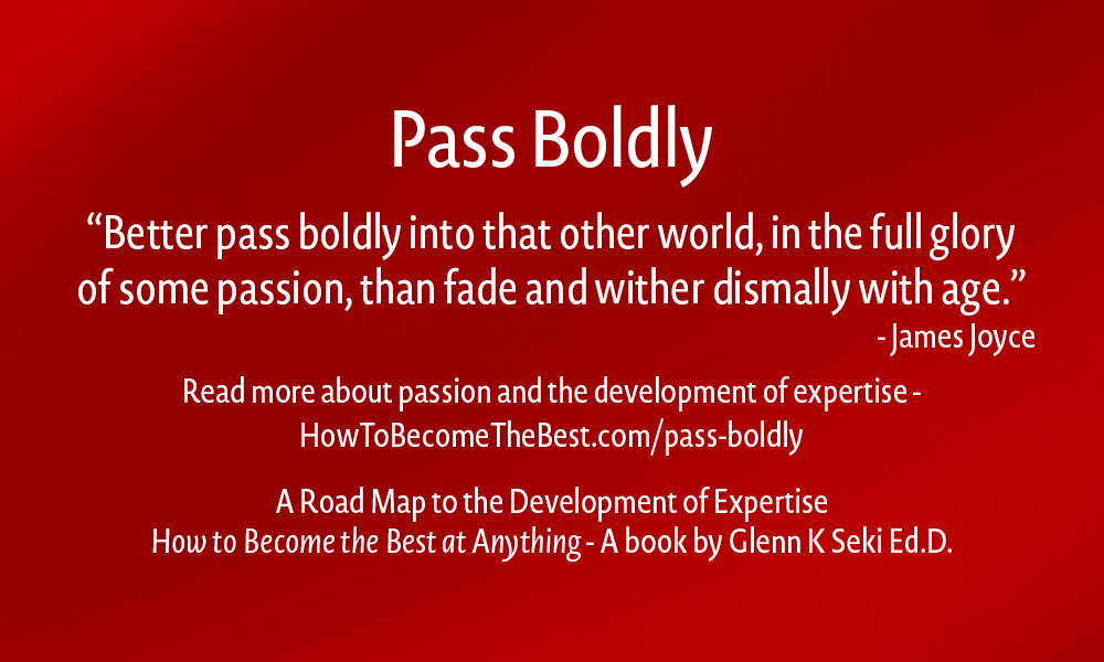 You need to have a passion for whatever it is you are trying to become the best. It will help motivate you to persist in your deliberate practice to reach your goal (more on deliberate practice later).